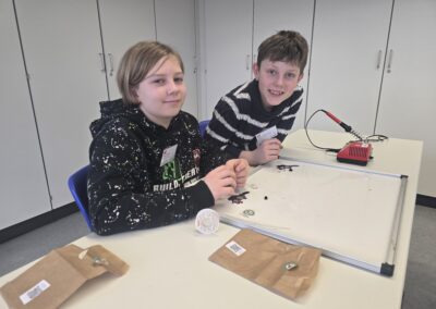 Während der anschließenden Korrekturphase durften die Kinder kreativ werden und Axolotl-Leuchtobjekte löten, die sie als Erinnerung mit nach Hause nehmen konnten. Hier gilt mein besonderer Dank Frau Daniela Schneider, die diesen Event durchgeführt hat.