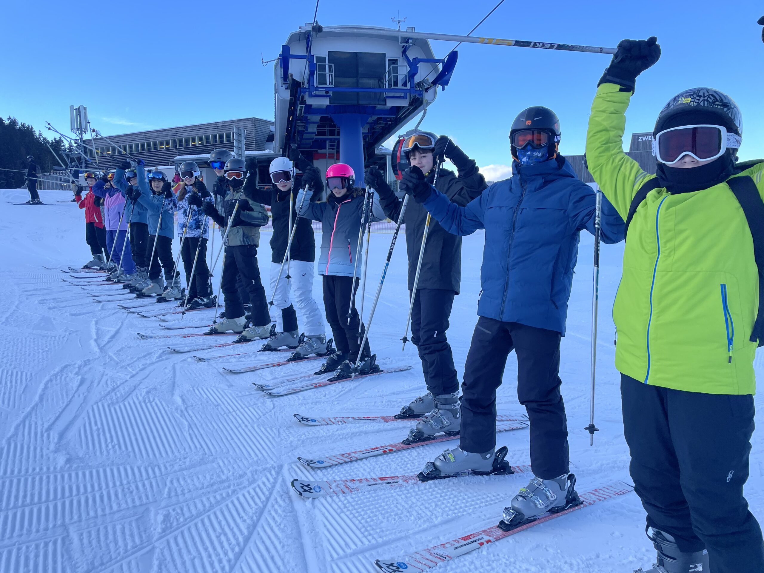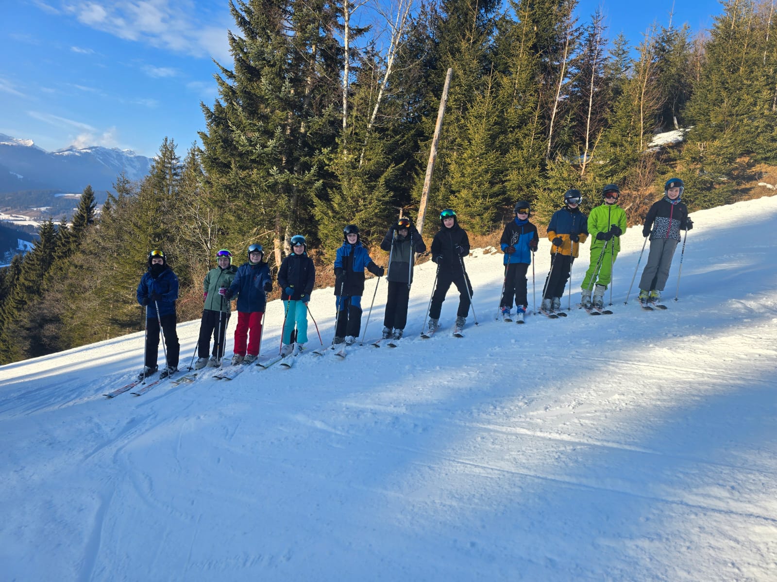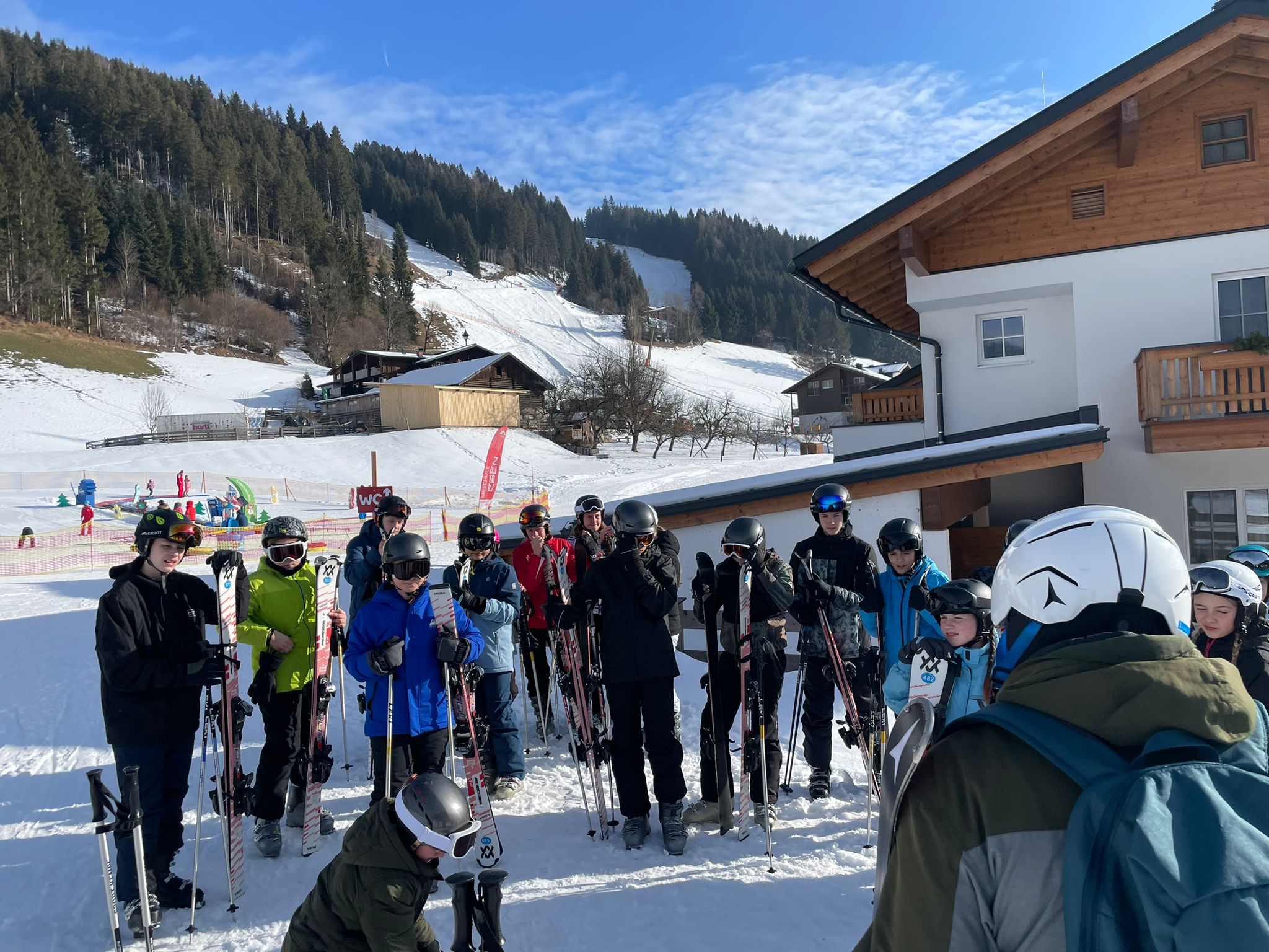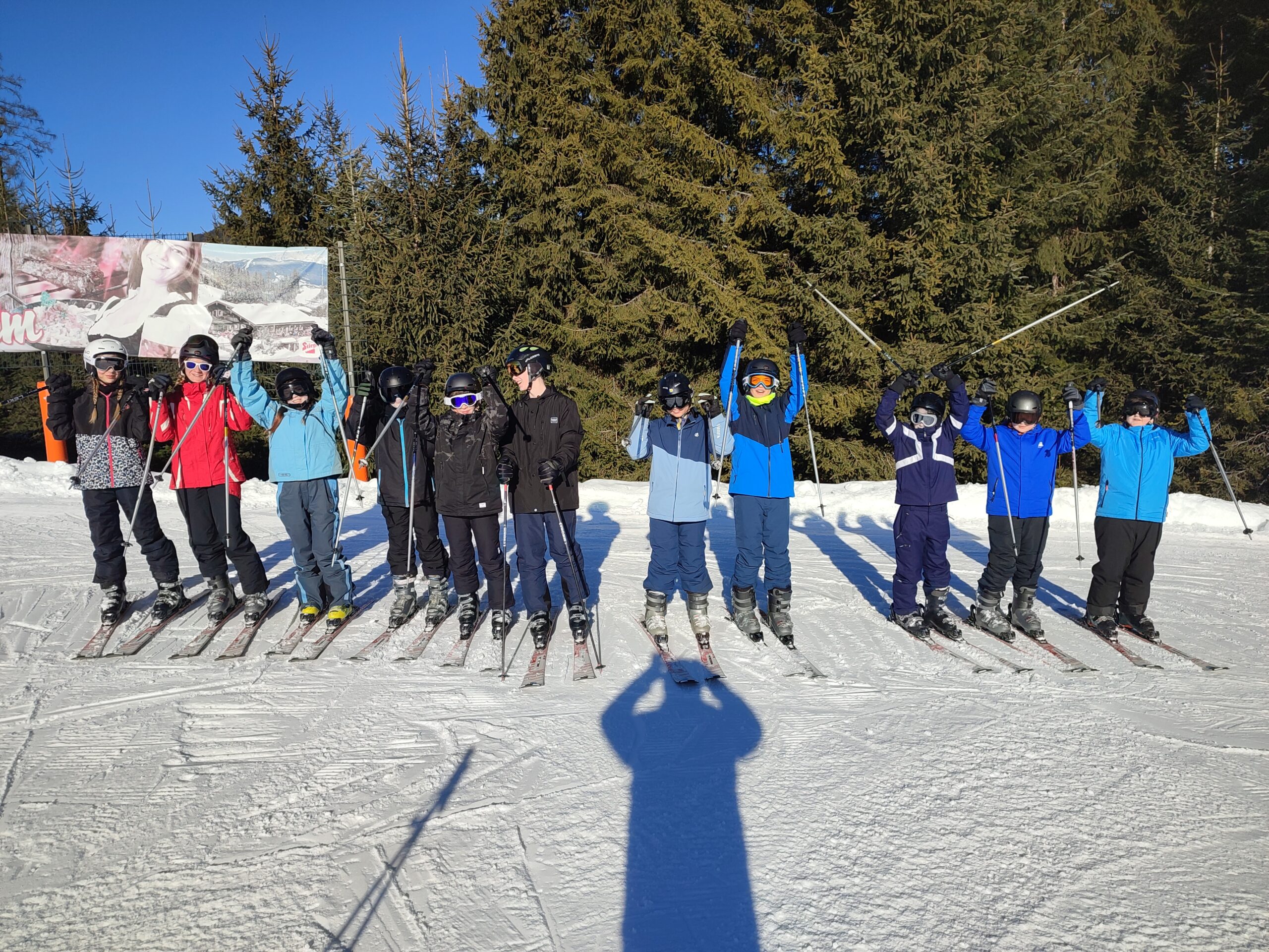 Wir sind heute schon um sieben Uhr aufgestanden. Nach dem Frühstück haben wir gemeinsam mit Herrn Reinauer Geburtstag gefeiert und sind danach ins Skigebiet gefahren. Dort lief das Skifahren noch besser als am Vortag.