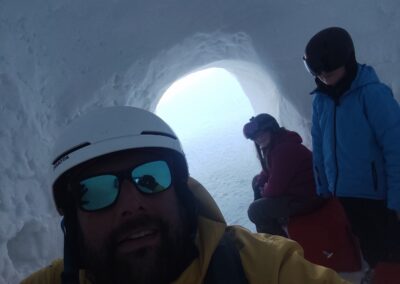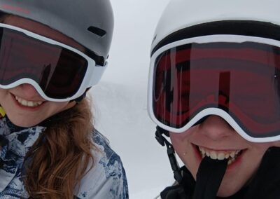 Um 12 Uhr gab es Mittagessen und nach einer kurzen Pause ging es wieder auf die Piste. Die Profis fuhren gemeinsam mit den Fortgeschrittenen bei Frau Schneider und Herrn Förster – und das in einem ziemlich hohen Tempo.