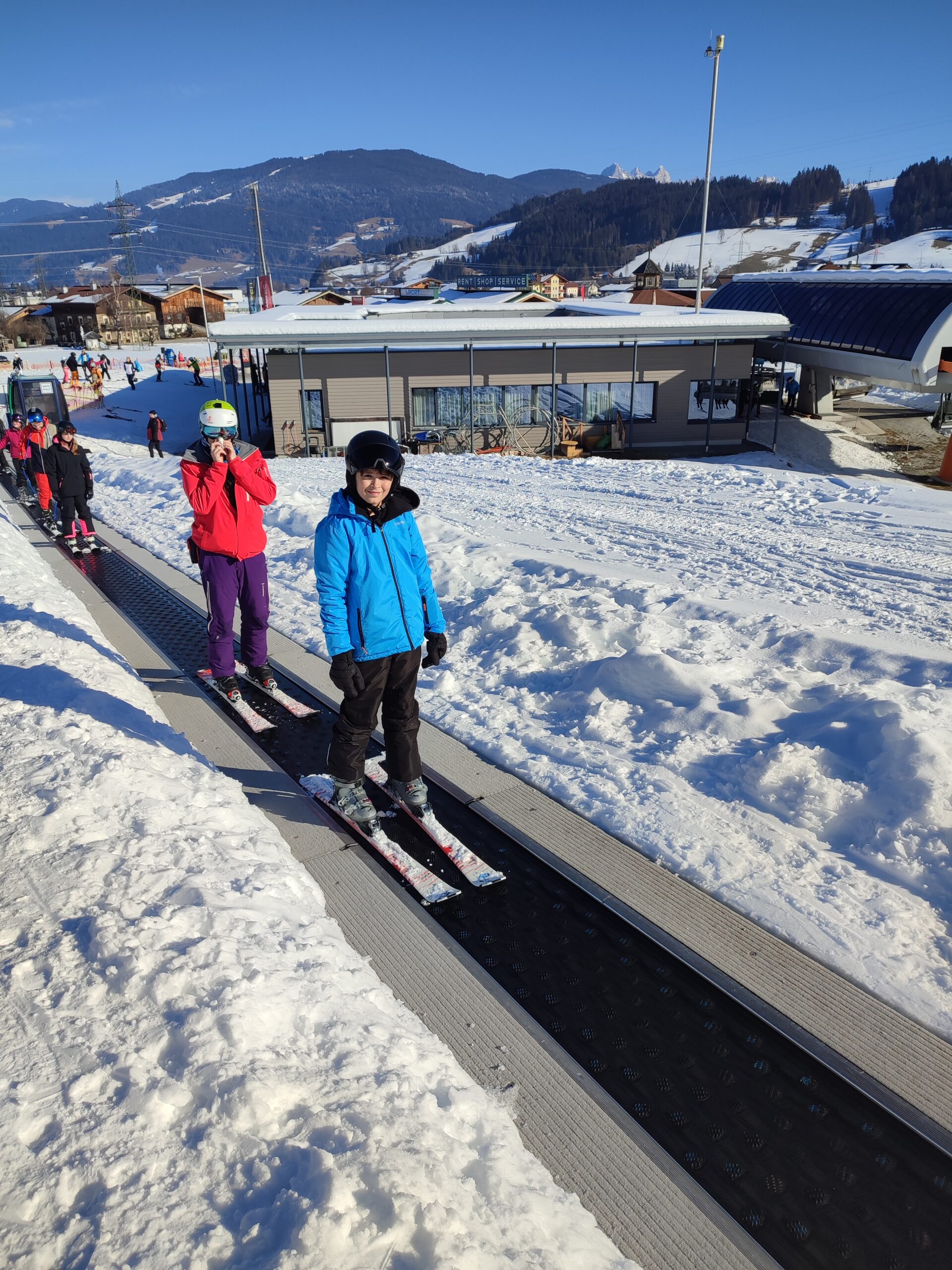 Nach dem Skifahren brachte uns der Skibus zurück, damit wir gemeinsam zu Mittag essen konnten. Es gab Schnitzel, genau das Richtige nach einem aktiven Vormittag. Am Nachmittag fuhren wir erneut los – diesmal auf eine ganz neue Piste nach Moadörfl, was für viel Abwechslung und neue Herausforderungen sorgte.
