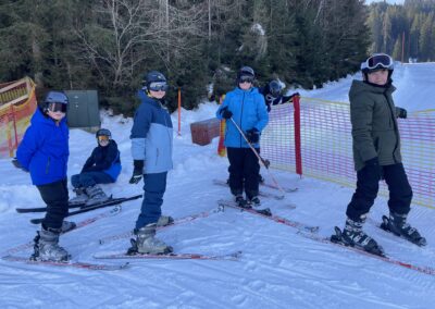Frisch gestärkt ging es am Nachmittag wieder in den Schnee, aber diesmal auf eine andere Strecke. Unsere Anfängergruppe flitzte mehrmals durch den lustigen Zauberwald, während die „Könner“ die steilen Pisten hinunterjagten.