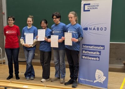 Unser junges Team erreichte bei den Junior-Teams einen starken 14. Platz deutschlandweit sowie einen hervorragenden 2. Platz am Standort Würzburg. Dabei hatten wir Punktgleichstand (Anzahl gelöster Aufgaben) mit dem erstplatzierten Team. Ausschlaggebend war letztlich, dass unsere höchste gelöste Aufgabe die Nummer 31 war, während das Siegerteam Aufgabe 32 lösen konnte – weshalb wir den ersten Platz nur knapp verpassten. Die ersten drei Plätze gewannen T-Shirts und durften sich zusätzlich jeweils einen Preis aus Spielen und Büchern aussuchen. Nach diesem erfolgreichen Tag traten wir zufrieden die Heimreise an.
