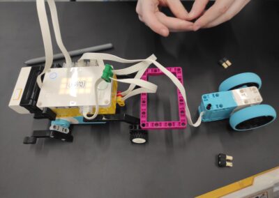 Zu Beginn erhielten die Teilnehmenden eine Einführung in die Funktionsweise der LEGO SPIKE Sets und die dazugehörige Programmierumgebung. Anschließend durften sie in kleinen Teams eigene Roboter bauen und programmieren. Dabei standen Kreativität, Teamarbeit und logisches Denken im Vordergrund. Besonders begeistert waren die Schülerinnen und Schüler, als ihre Roboter die ersten Bewegungen ausführten und auf verschiedene Sensoren reagierten.