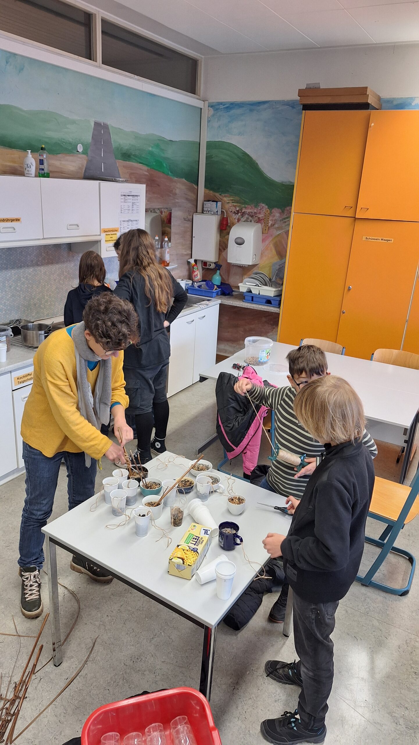 - Vogelfutter hergestellt und auf dem Schulgelände aufgehängt